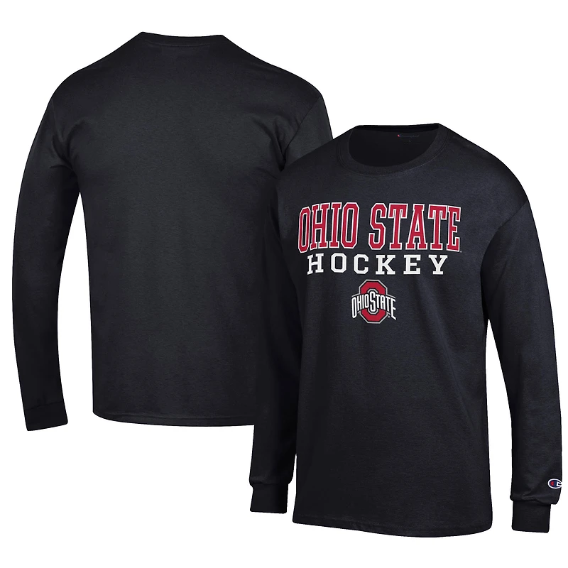 Men's Champion Black Ohio State Buckeyes Hockey Stack Long Sleeve T-ShirtMen's Champion Black Ohio State Buckeyes Hockey Stack Long Sleeve T-Shirt