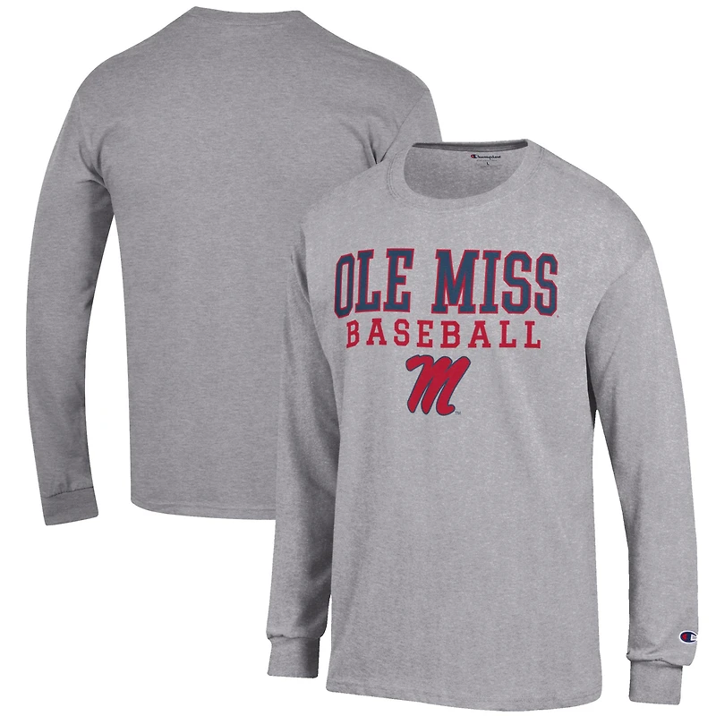 Men's Champion Gray Ole Miss Rebels Baseball Stack Long Sleeve T-Shirt in Franklin, TN