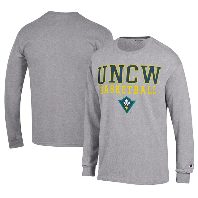Men's Champion Gray UNC Wilmington Seahawks Icon Logo Basketball Jersey Long Sleeve T-Shirt