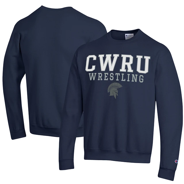 Men's Champion Navy Case Western Reserve Spartans Wrestling Stack Logo Powerblend Pullover Sweatshirt