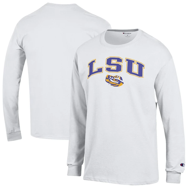 Men's Champion White LSU Tigers Arch Over Logo Long Sleeve T-Shirt