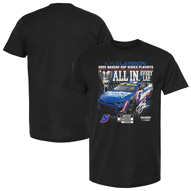 Men's Checkered Flag Sports Black Kyle Larson 2025 NASCAR Cup Series Playoffs HendrickCars.com All T-Shirt