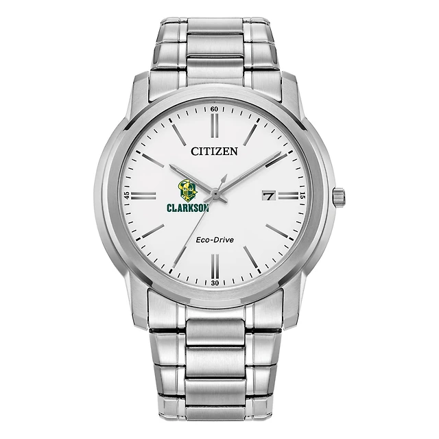 Men's Citizen Watch Silver Iowa Hawkeyes Eco-Drive White Dial Stainless Steel Watch