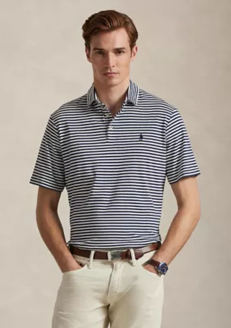 An American style standard since 1972, the Polo Ralph Lauren polo shirt has been imitated but never matched. Over the decades, Ralph Lauren has reimagined his signature style in a wide array of colors and fits, yet all retain the quality and attention to detail of the iconic original. This striped version is made with luxe cotton interlock that features an ultrasoft finish. Classic fit: cut fuller through the chest, waist and sleeve, with a lower armhole that falls closer to the elbow Size medium has a 29.5" body length (front and back), an 18.5" shoulder and a 45" chest Polo collar Three-button placket Short sleeves Even vented hem Signature embroidered Pony at the left chest 100% cotton Machine washable Imported Model is 6'1" (185 cm) and wears a size medium Imported