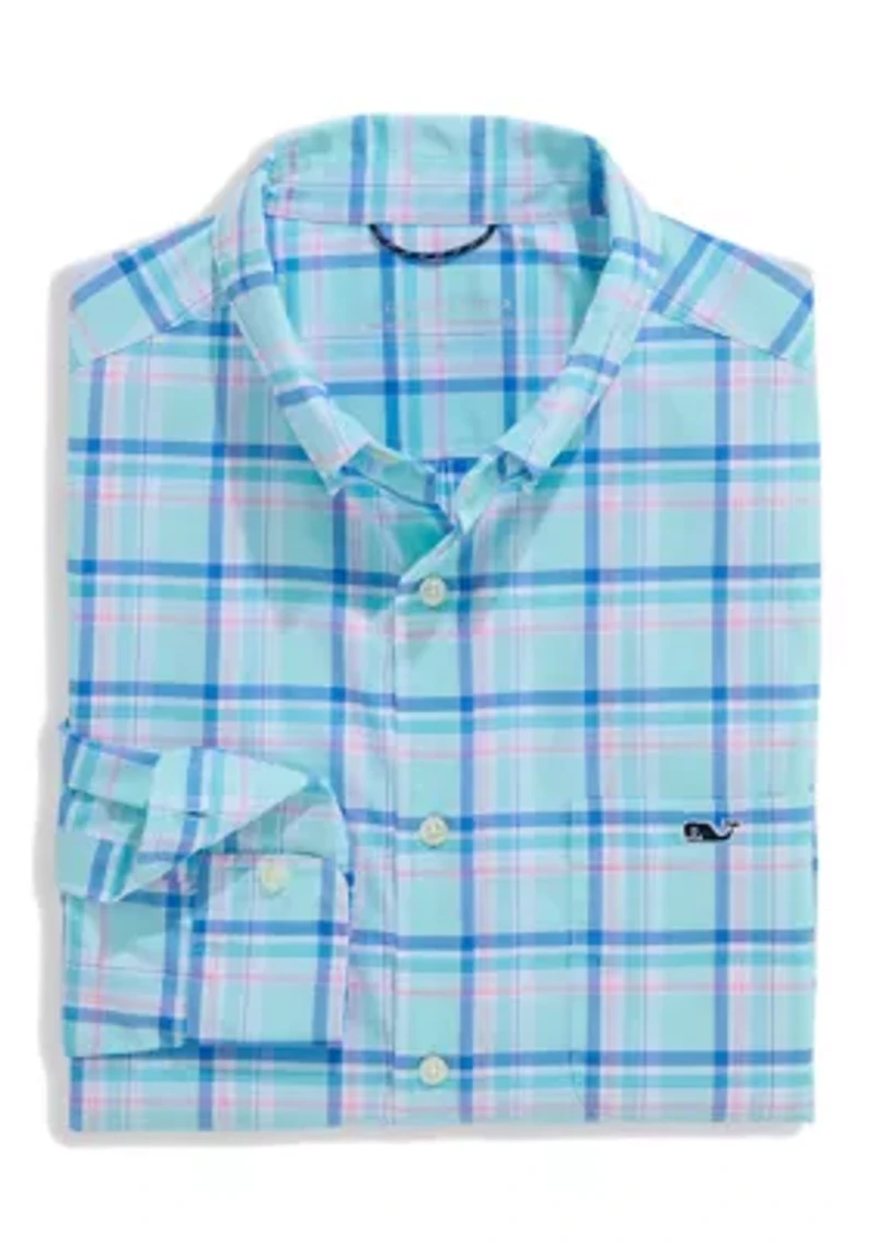 This performance shirt from Vineyard Vines offers a breathable and stylish fit. Collar, Button-down collar Long sleeve Plaid Imported Material & Care Nylon/Spandex Machine washable