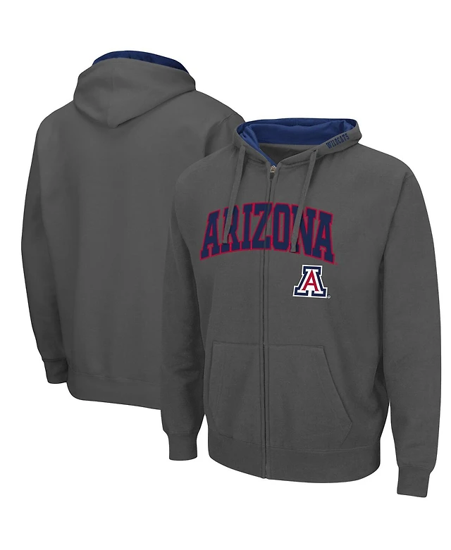 Men's Colosseum Charcoal Arizona Wildcats Arch and Logo 3.0 Full-Zip Hoodie