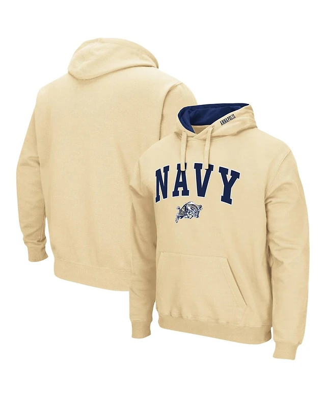 Men's Colosseum Gold Navy Midshipmen Arch and Logo 3.0 Pullover Hoodie