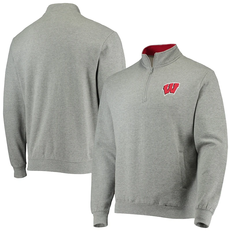 Men's Colosseum Heathered Gray Wisconsin Badgers Tortugas Team Logo Quarter-Zip Jacket in Franklin, TN