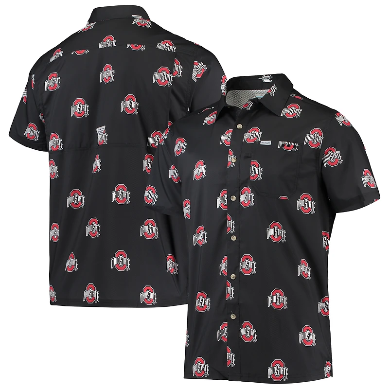 Men's Columbia Black Ohio State Buckeyes Super Slack Tide Omni-Shade Button-Up Shirt