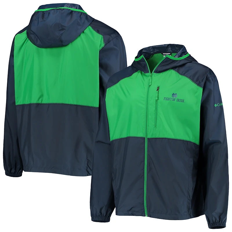 Men's Columbia Navy/Green Notre Dame Fighting Irish Flash Forward Hoodie Full-Zip Lightweight Windbreaker in Franklin, TN