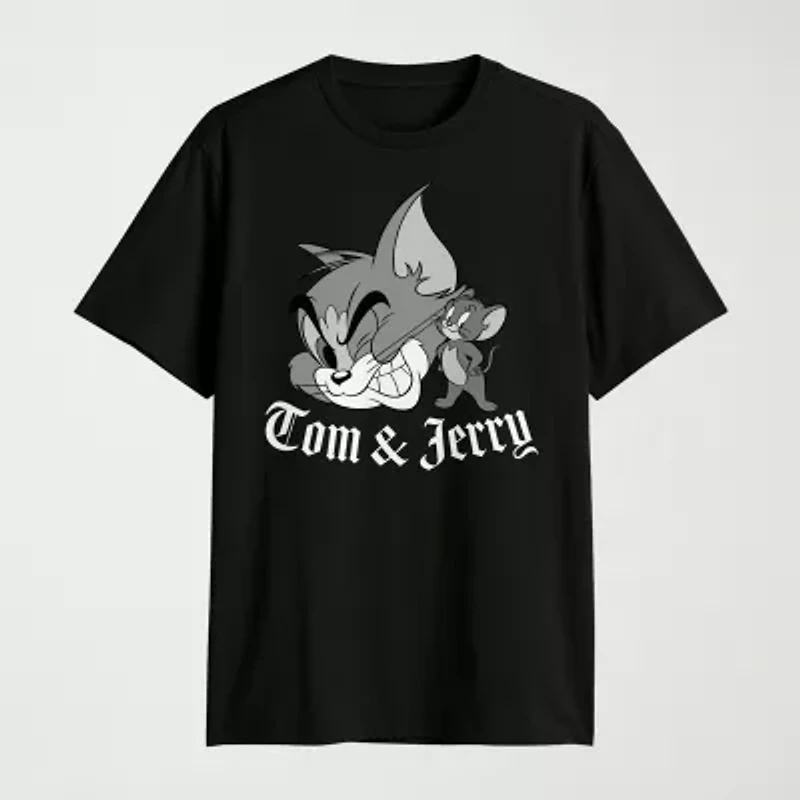 The Tom and Jerry men's graphic t-shirt brings a spirited, nostalgic energy to your weekend rotation. It features a crew neck, short sleeves, and a timeless classic fit. The iconic character print and easy pullover design provide an effortless, high-spirited look. Pair it with your favorite denim for a relaxed, retro-inspired aesthetic.