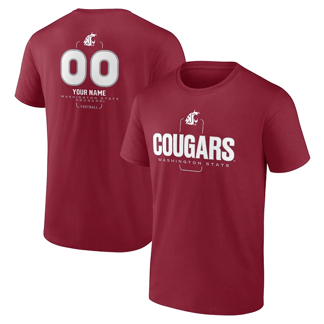 Men's Crimson Washington State Cougars Personalized Name & Number Midfielder T-Shirt