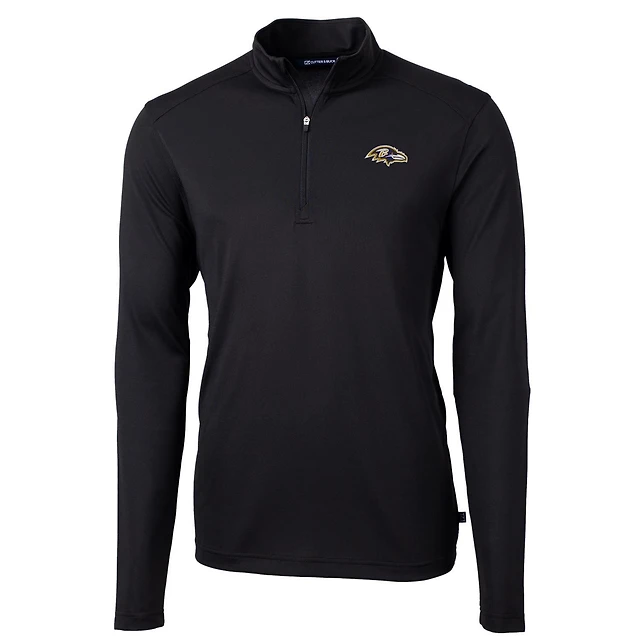 Men's Cutter & Buck Black Baltimore Ravens Virtue Eco Pique Recycled Quarter-Zip Pullover Jacket