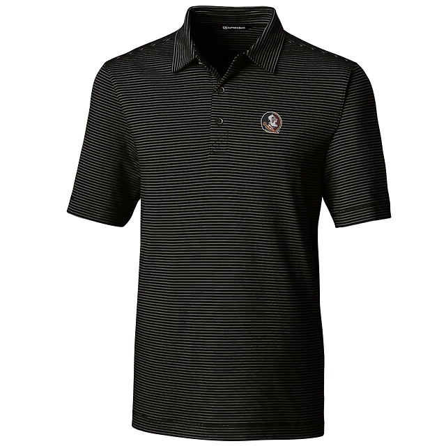 Men's Cutter & Buck Black Florida State Seminoles Alumni Logo Forge Tonal Stripe Stretch Polo