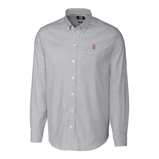 Men's Cutter & Buck Charcoal Boston Red Sox Big & Tall Stretch Oxford Striped Long Sleeve Button-Down Shirt