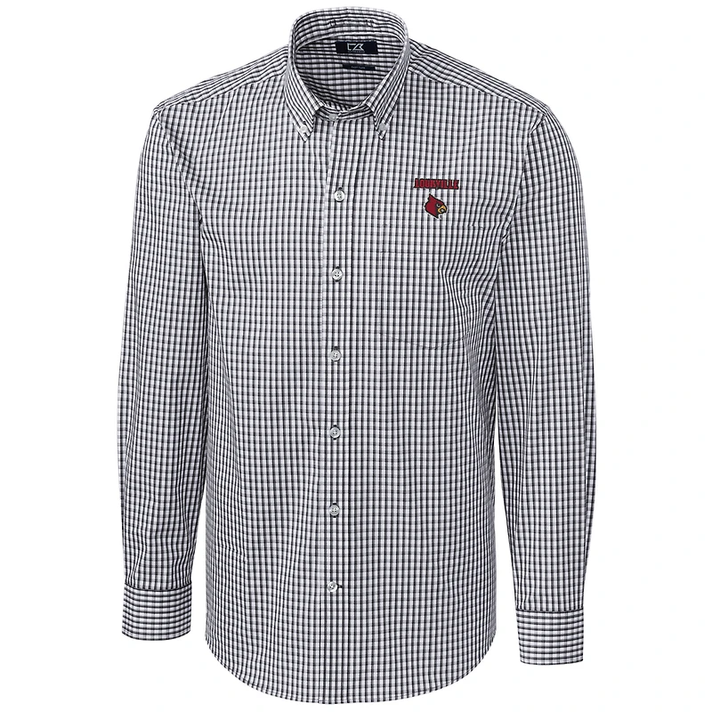 Men's Cutter & Buck Charcoal Louisville Cardinals Big & Tall Stretch Gingham Long Sleeve Button Down Shirt in Franklin, TN
