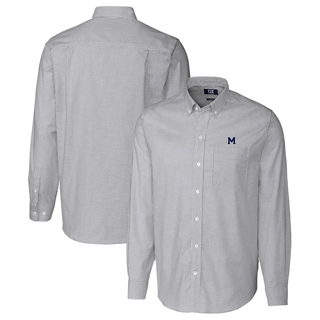 Men's Cutter & Buck Charcoal Michigan Wolverines Vault Stretch Oxford Stripe Long Sleeve Button-Down Shirt