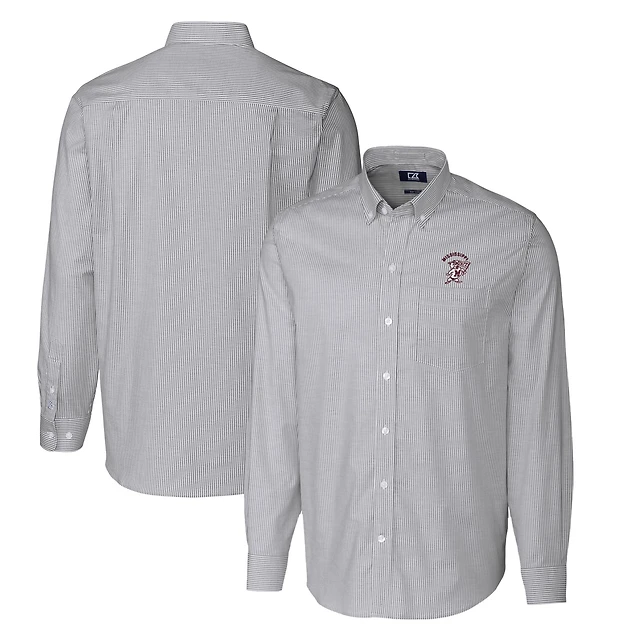 Men's Cutter & Buck Charcoal Mississippi State Bulldogs Vault Big & Tall Oxford Stripe Long Sleeve Button-Down Shirt