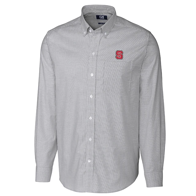 Men's Cutter & Buck Charcoal NC State Wolfpack Big & Tall Stretch Oxford Stripe Long Sleeve Button Down Shirt