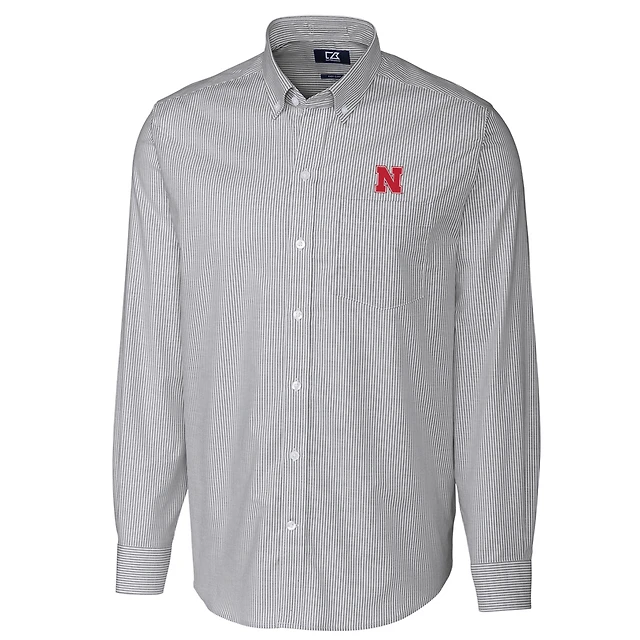 Men's Cutter & Buck Charcoal Nebraska Huskers Big & Tall Stretch Oxford Stripe Long Sleeve Button Down Shirt