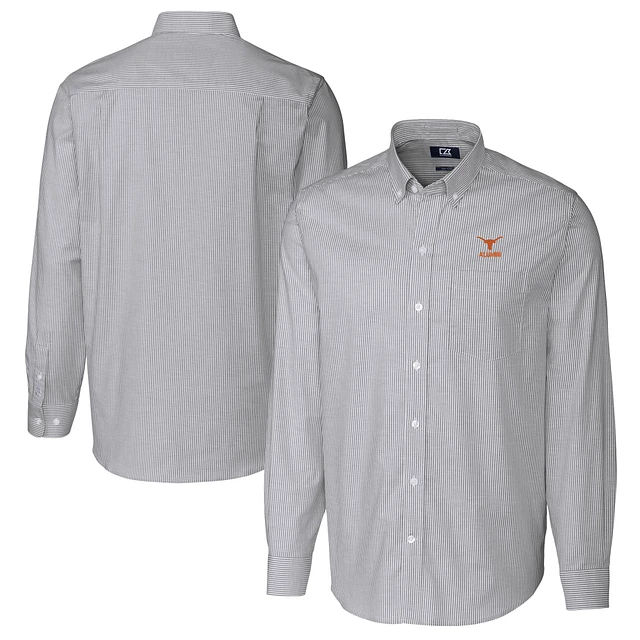 Men's Cutter & Buck Charcoal Texas Longhorns Alumni Logo Stretch Oxford Stripe Long Sleeve Button-Down Shirt