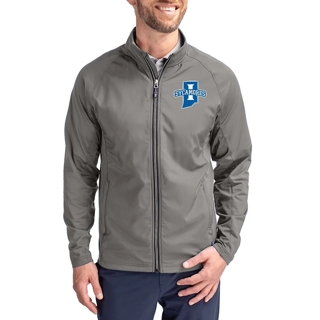 Men's Cutter & Buck Gray Indiana State Sycamores Adapt Eco Hybrid Recycled Full-Zip Jacket