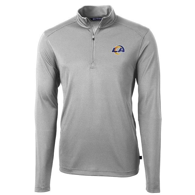 Men's Cutter & Buck Gray Los Angeles Rams Virtue Eco Pique Recycled Quarter-Zip Pullover Jacket
