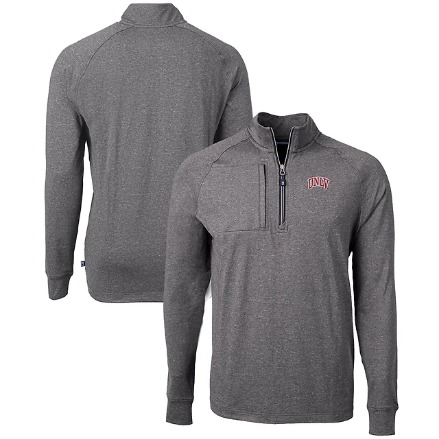 Men's Cutter & Buck Heather Black UNLV Rebels Big & Tall Adapt Eco Knit Quarter-Zip Pullover Top