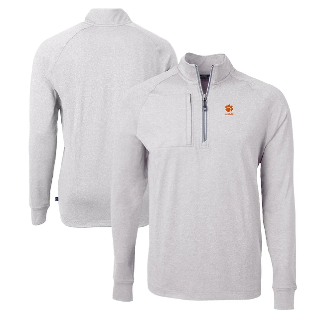 Men's Cutter & Buck Heather Gray Clemson Tigers Alumni Logo Adapt Eco Knit Heathered Recycled Quarter-Zip Pullover Top