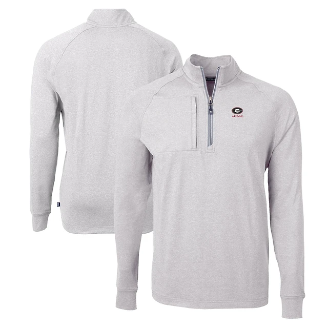 Men's Cutter & Buck Heather Gray Georgia Bulldogs Alumni Logo Adapt Eco Knit Heathered Recycled Quarter-Zip Pullover Top