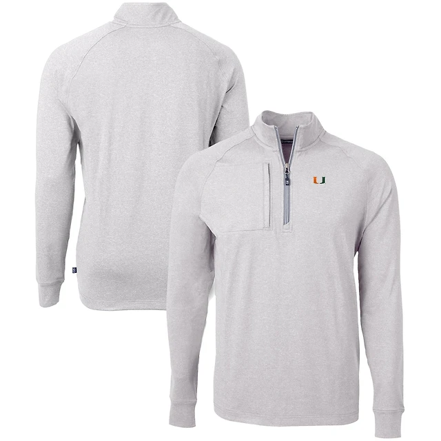 Men's Cutter & Buck Heather Gray Miami Hurricanes Big & Tall Adapt Eco Knit Quarter-Zip Pullover Top
