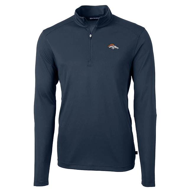 Men's Cutter & Buck Navy Denver Broncos Virtue Eco Pique Recycled Quarter-Zip Pullover Jacket