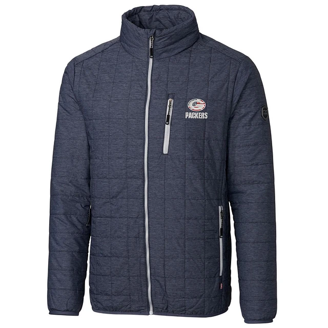 Women's Cutter & Buck Navy Green Bay Packers Americana Rainier Primaloft Eco Full-Zip Hybrid Jacket