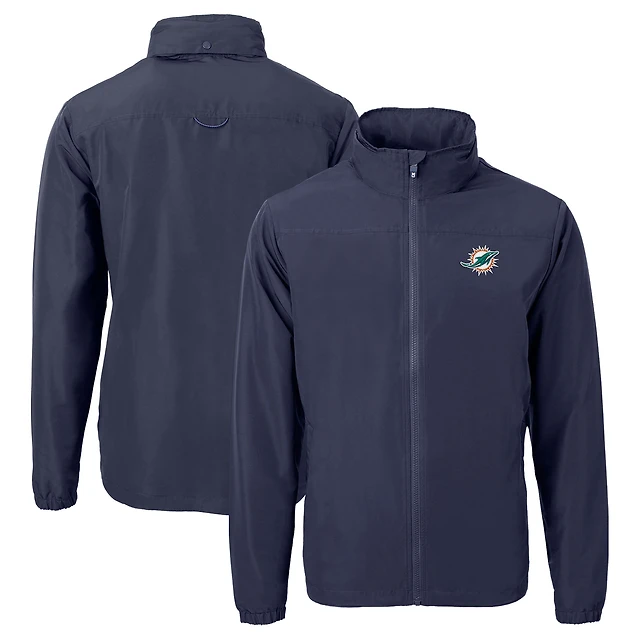 Men's Cutter & Buck Navy Miami Dolphins Charter Eco Recycled Full-Zip Jacket