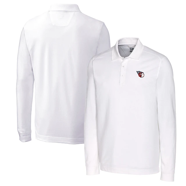 Men's Cutter & Buck White Houston Astros Big & Tall Americana Advantage Eco Pique DryTec Tri-Blend Long Sleeve Polo