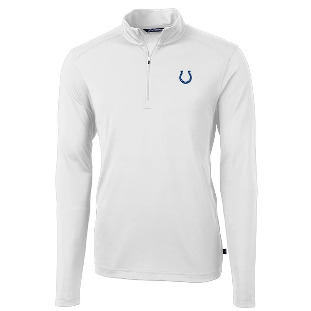 Men's Cutter & Buck White Indianapolis Colts Virtue Eco Pique Recycled Quarter-Zip Pullover Jacket