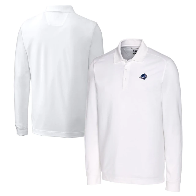 Men's Cutter & Buck White Jacksonville Jaguars Helmet Advantage Tri-Blend Pique Long Sleeve Polo