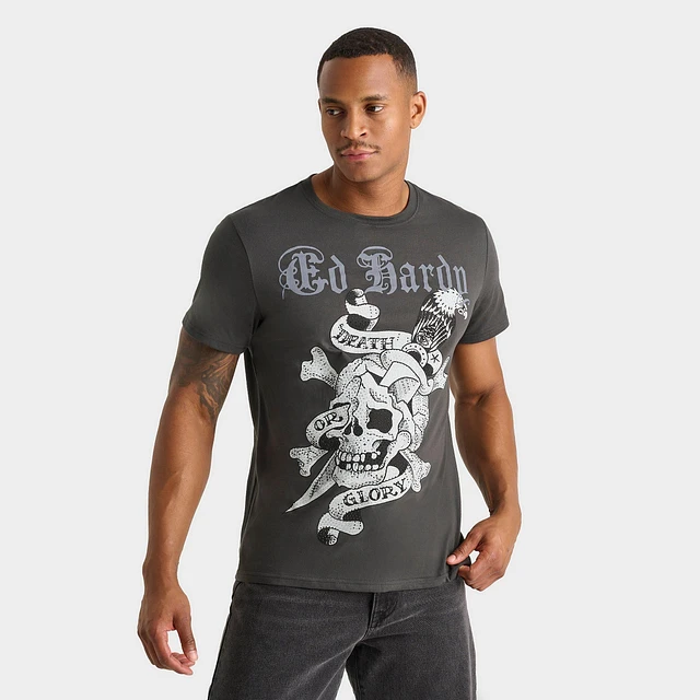 Ed Hardy Death Or Glory Skull Charcoal T-Shirt