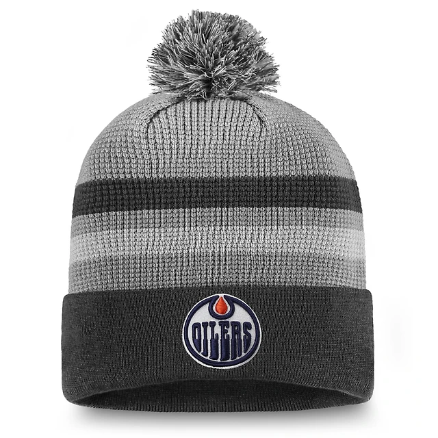 Men's Fanatics Gray Edmonton Oilers Authentic Pro Home Ice Cuffed Knit Hat with Pom