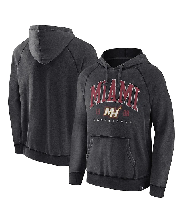 Men's Fanatics Heather Charcoal Distressed Miami Heat Foul Trouble Snow Wash Raglan Pullover Hoodie