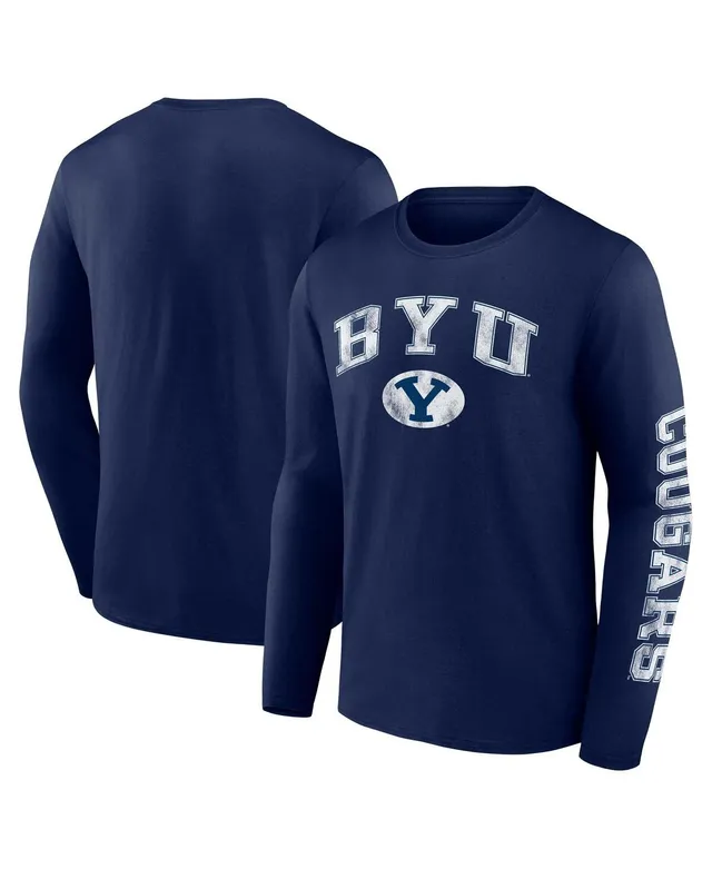 Men's Fanatics Navy Byu Cougars Distressed Arch Over Logo Long Sleeve T-shirt