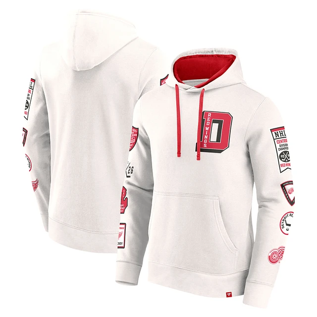 Men's Fanatics White Detroit Red Wings Letterman Fleece Pullover Hoodie