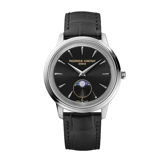 Men's Frederique Constant Classics Moneta Moonphase Watch with Black Dial and Leather Strap (Model: Fc-206B3S6)