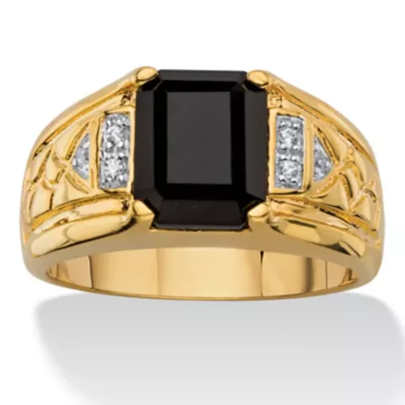 Men's Genuine Emerald-Cut Black Onyx and Diamond Accent 18k Gold-Plated Ring in Franklin, TN