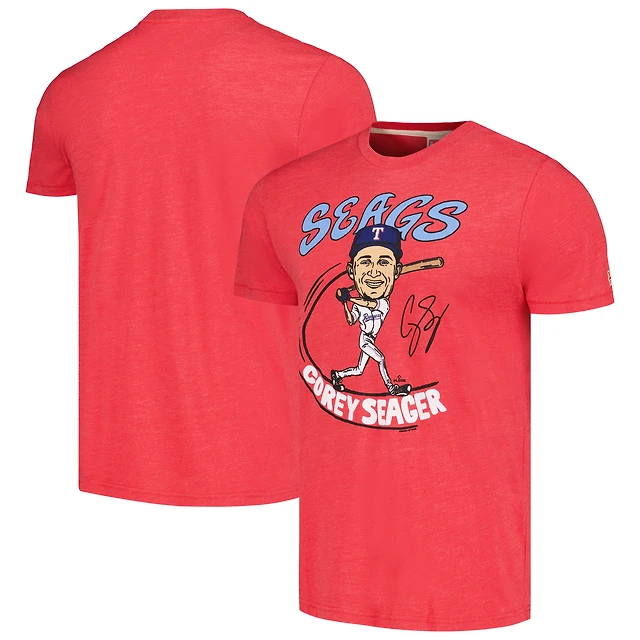 Men's Homage Corey Seager Red Texas Rangers Caricature Tri-Blend T-Shirt
