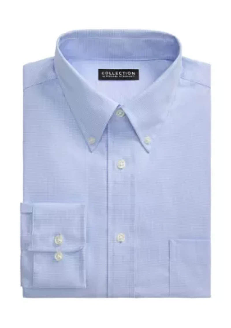 This Collection™ By Michael Strahan's shirt features a comfortable stretch fabric that resists wrinkles and dries quickly to keep the wearer looking and feeling confident throughout the day. Crafted in regular fit for a relaxed, classic look. Button closure Button-down collar Long sleeves Houndstooth pattern Imported Material & Care Cotton, polyester, spandex Machine washable