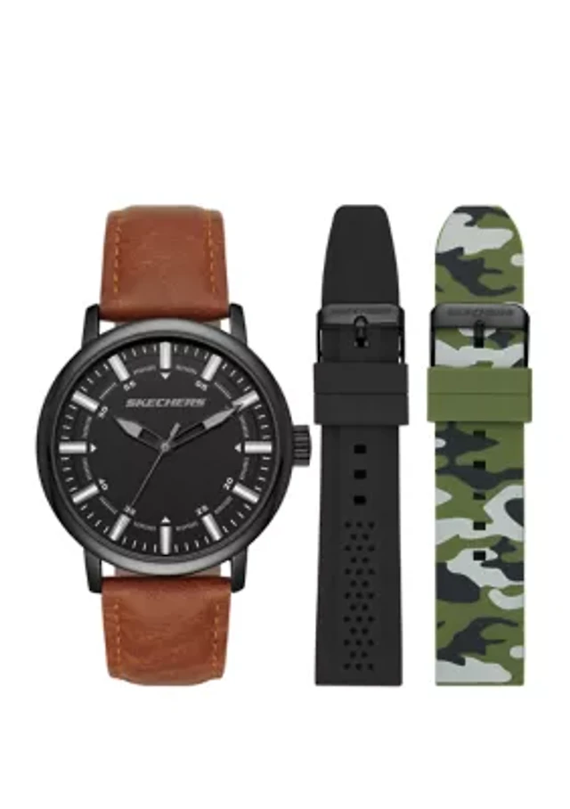 Men's Interchangeable Brown Watch Set