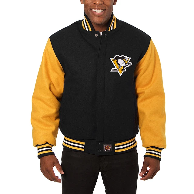Men's JH Design Black/Gold Pittsburgh Penguins Big & Tall All-Wool Jacket with Embroidered Logos