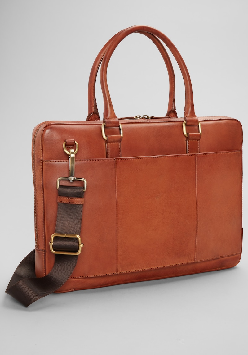 Men's Jos. A. Bank Burnished Leather Briefcase at Jos. A. Bank, Cognac/Tan,