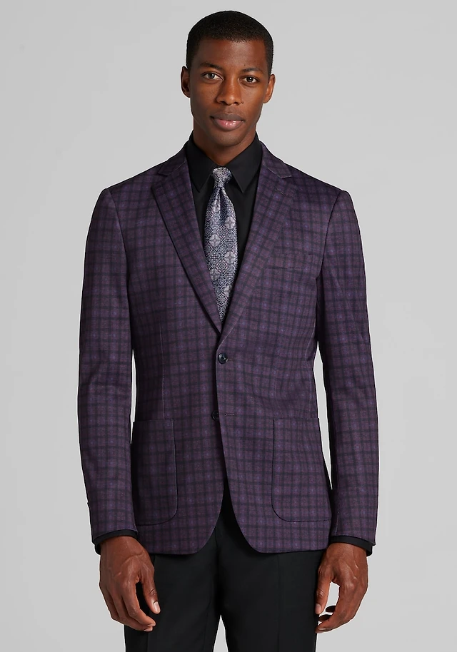Men's Jos. A. Bank Comfort Stretch Slim Fit Plaid Knit Sportcoat at Jos. A. Bank, Burgundy/Purple